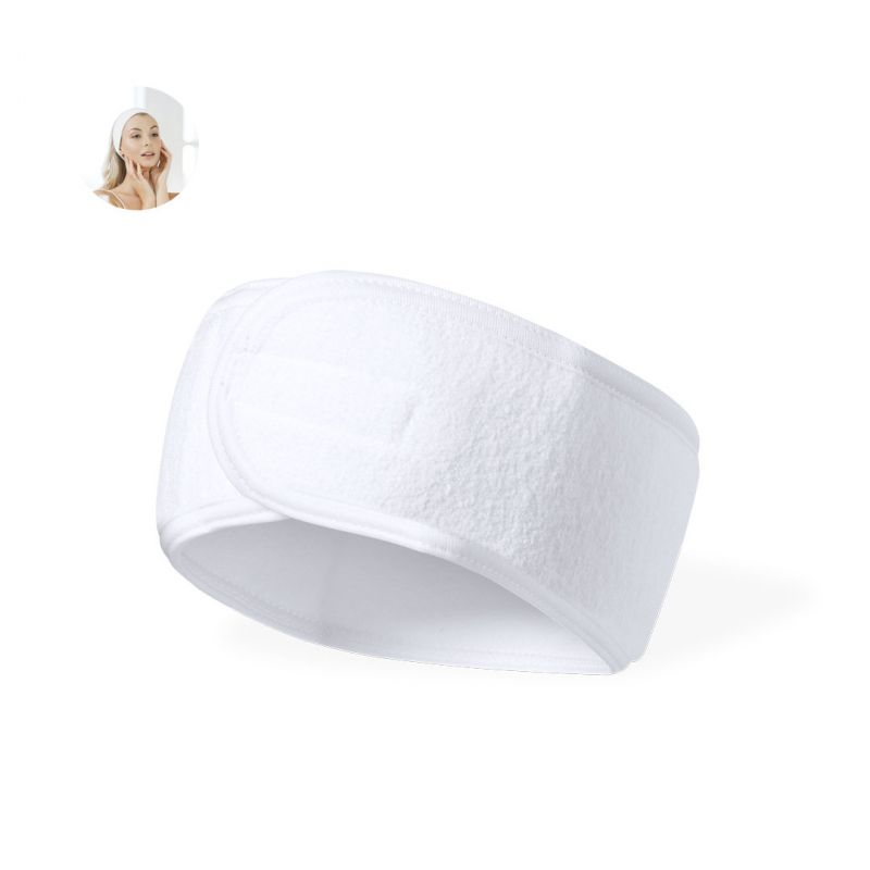 Cinta para pelo fabricada en suave poliéster. Banda ajustable a la cabeza con velcro para despejar el pelo de la cara mientras se aplican los tratamientos beauty.