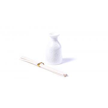 Difusor aromático de agradable aroma jazmín. Incluye tarro de fragancia en cerámica, palitos aromáticos y tarro de cristal de 15ml con fragancia. Presentado en estuche individual con compartimentos independientes y ventana.
