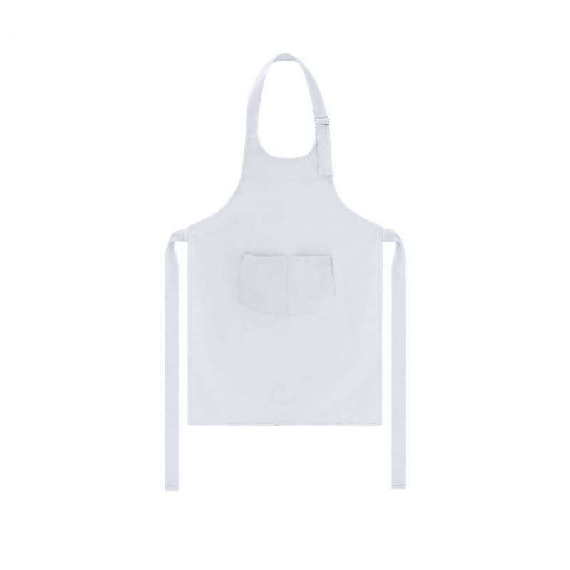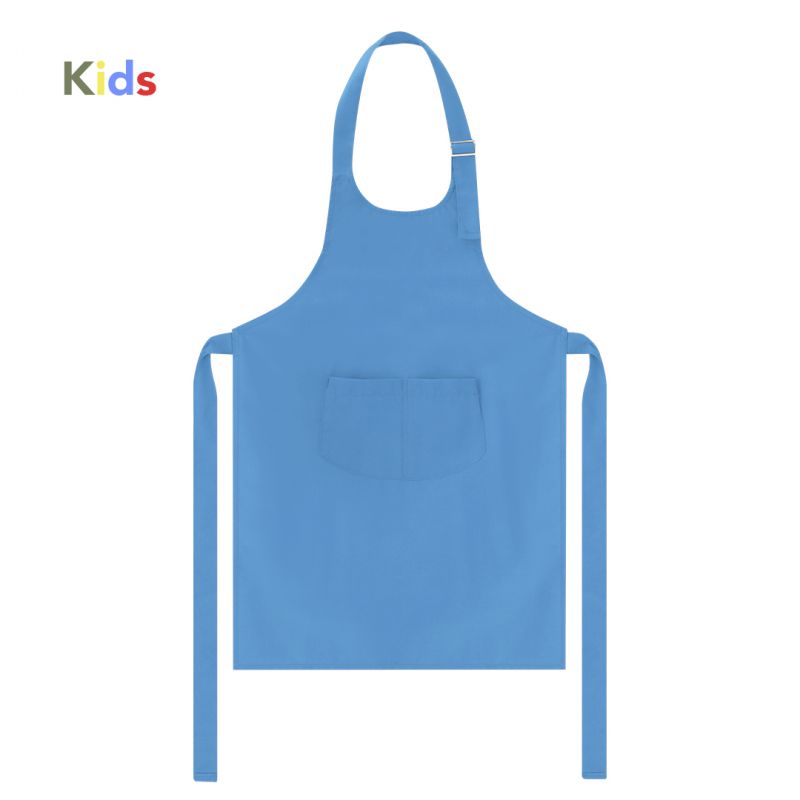 Delantal infantil de alta calidad fabricado en combinación de algodón y poliéster. Con práctico bolsillo doble frontal y cintas de cuello con ajustador cromado. De corte por debajo de la rodilla que proporciona una excelente cobertura.