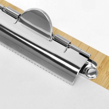 Excelente organizador en bambú tamaño 24,4 x 32,7cm. Con resistente pinza para documentación en acabado plateado.