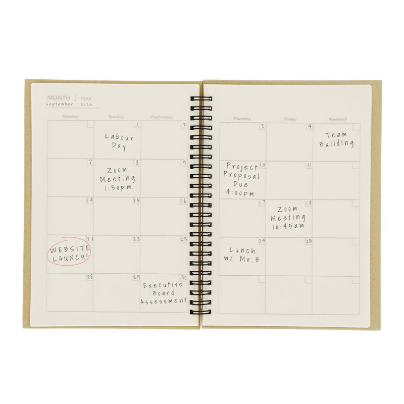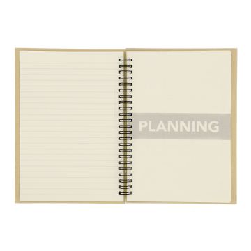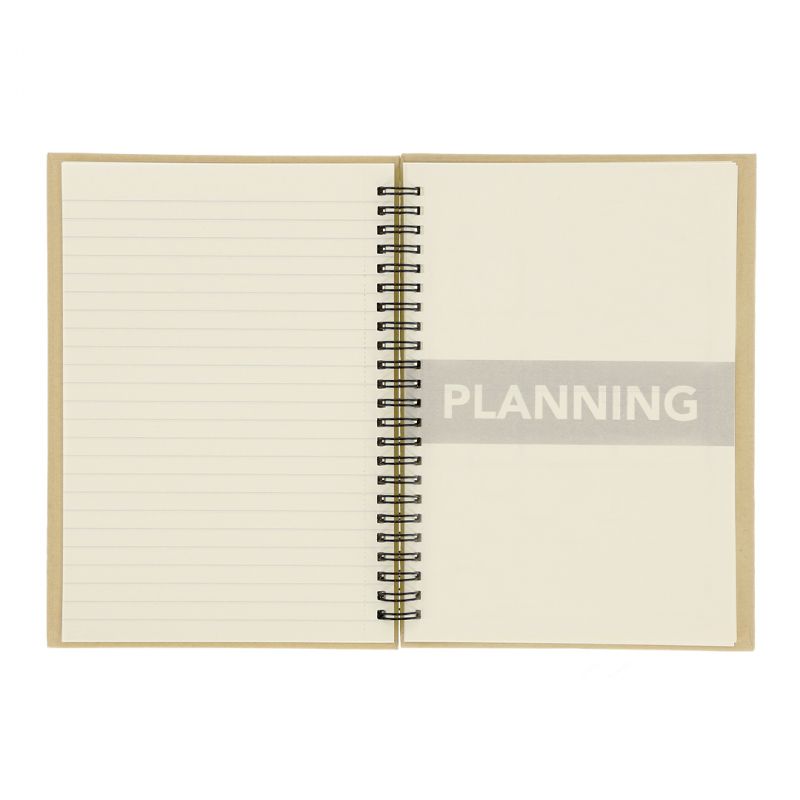 Libreta con planificador mensual incluido. Con tapas rígidas de carton reciclado. Incluye: