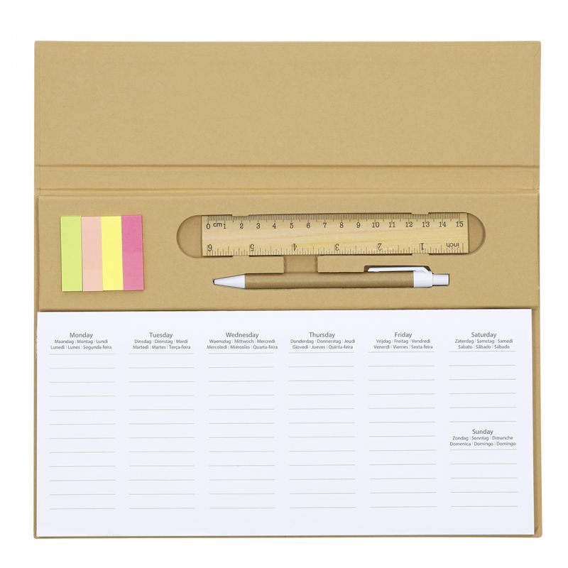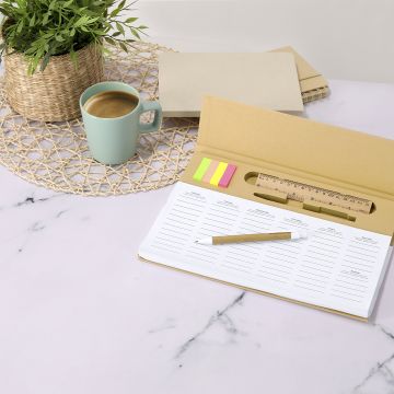 Original estuche de línea nature, con tapa de bambú y cuerpo en fieltro RPET, fruto de la combinación del proceso de reciclaje de materiales plásticos junto con la técnica milenaria de fabricación del fieltro, dando como resultado un material de eco-tendencia que, además de ser de origen reciclado, también se convierte en reciclable. Regla en tapadera (pulgadas y cm), con soporte integrado para smartphone y distintivo RPET en la parte de fieltro.