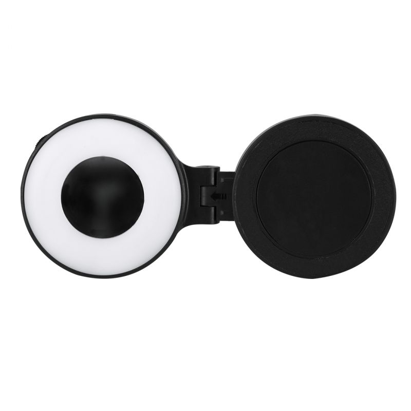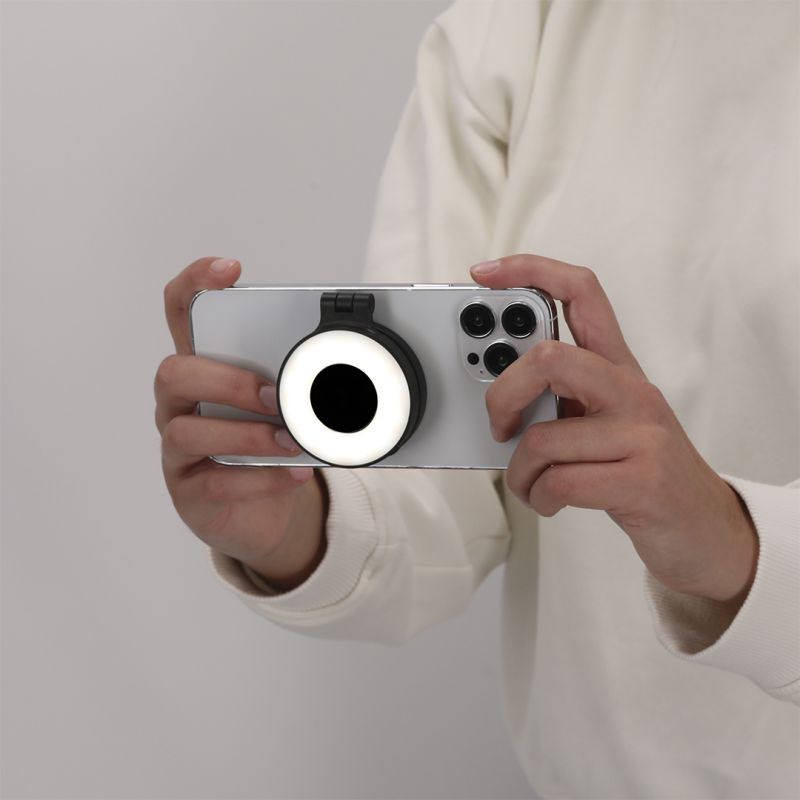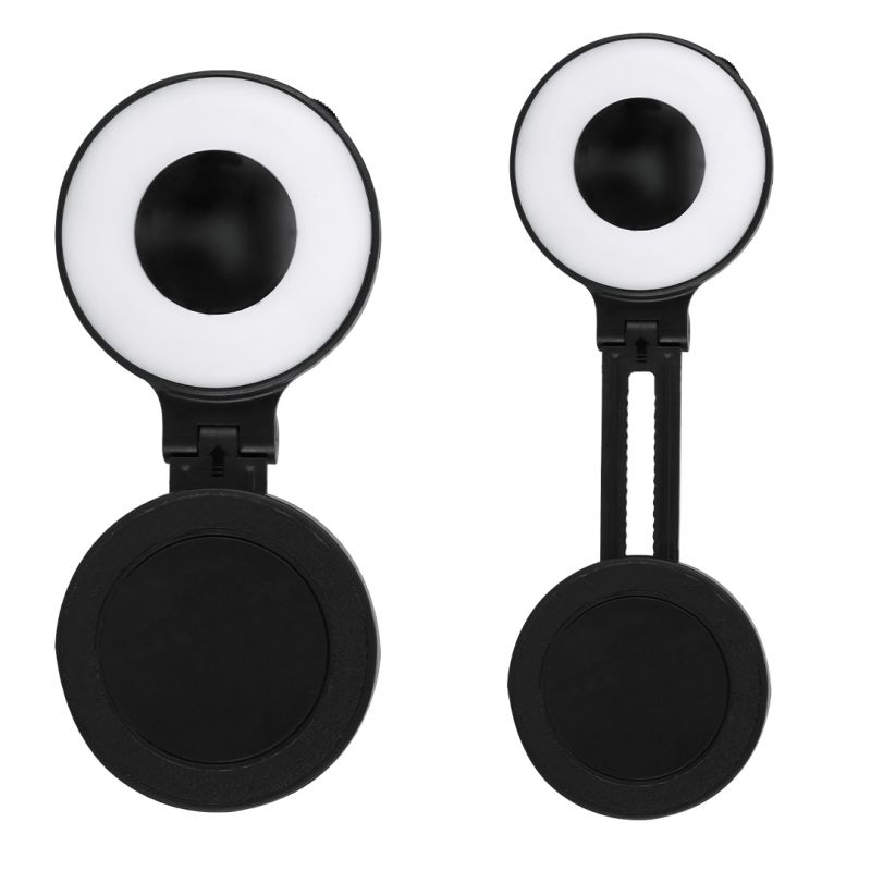 Anillo de luz led con acople para smartphone magnético, fabricado en resistente ABS. 24 ledes, con 3 modos de luz e intensidad regulable y recargable por USB (cable Tipo C) de batería 450 mAh. Con soporte extensible, ideal para ponerlo en diferentes posiciones en tu smartphone y ordenador.