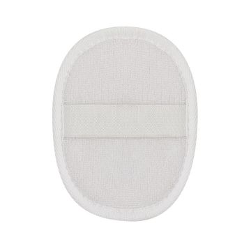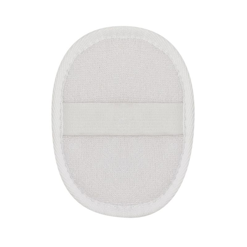 Esponja exfoliante de baño en algodón adaptable a la palma de la mano, con cinta de sujeción a juego.