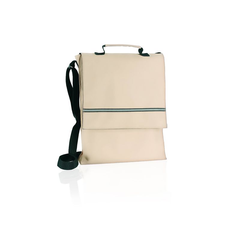 Portadocumentos con solapa de cierre de velcro en poliéster 600D de vivos colores y con franja frontal reflectante. Con asas reforzada a juego, cinta bandolera ajustable y compartimentos interiores con fundas para bolígrafos y smartphone.